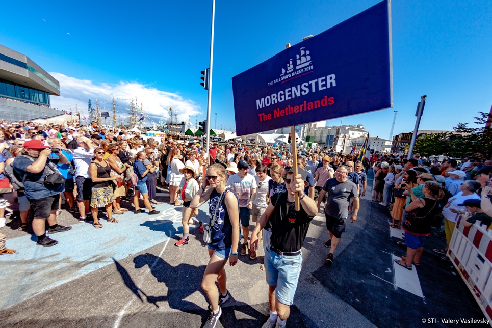 The second day in saw the Tall Ships fleet take part in the final Crew Parade and Prize Giving Ceremony in a sun drenched Aarhus. With a two kilometre route that took them through the heart of the beautiful Danish city, the crews brought a beautiful kaleidoscope of colours and energy to Aarhus. Spectators and local residents lined the parade route cheering on the crews as they made their way to the main stage area ready for the final Prize Giving Ceremony of 2019.
